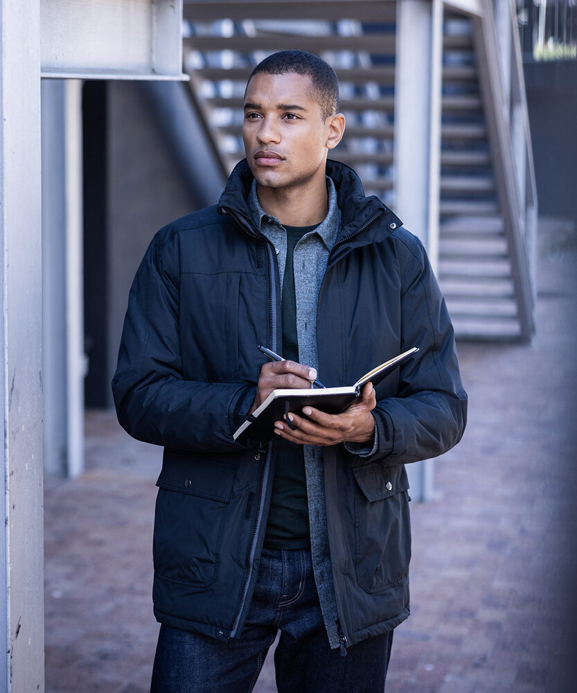 Waterproof hydra fort 5000 peached polyester fabric. Windproof fabric. Thermo-guard insulation. Taped seams 160 gsm body insulation wadding weight.