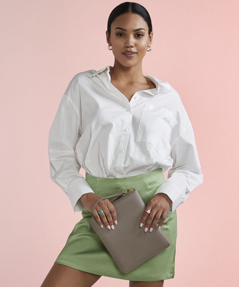 TearAway label for ease of rebranding. Saffiano fine grain. Can be decorated front and rear. Zippered main compartment. Zippered internal pocket. Multiple internal pockets. Holds 6 credit cards. Soft-touch lining. iPad mini/ Tablet compatible. Multi-purpose use.