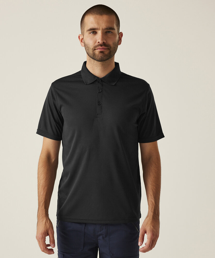 100% polyester. Good wicking performance and antibacterial. Short-sleeved.